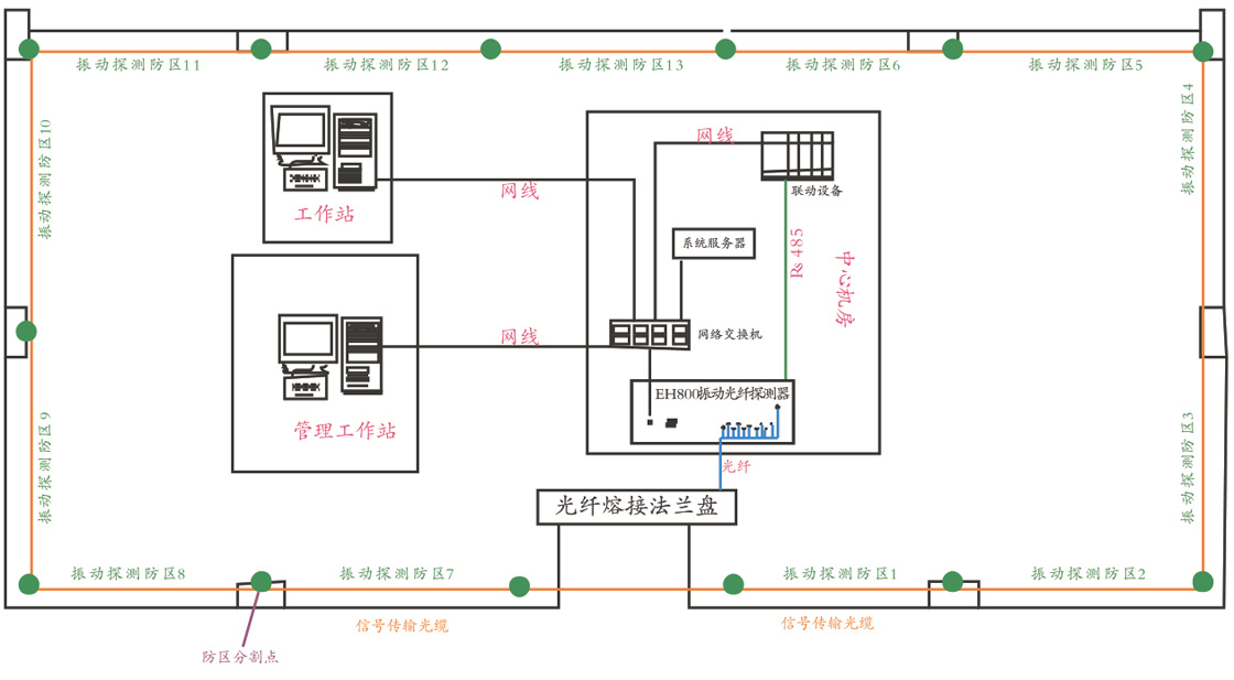 • 包含与振动光纤主机连接的支持16防区模块设备