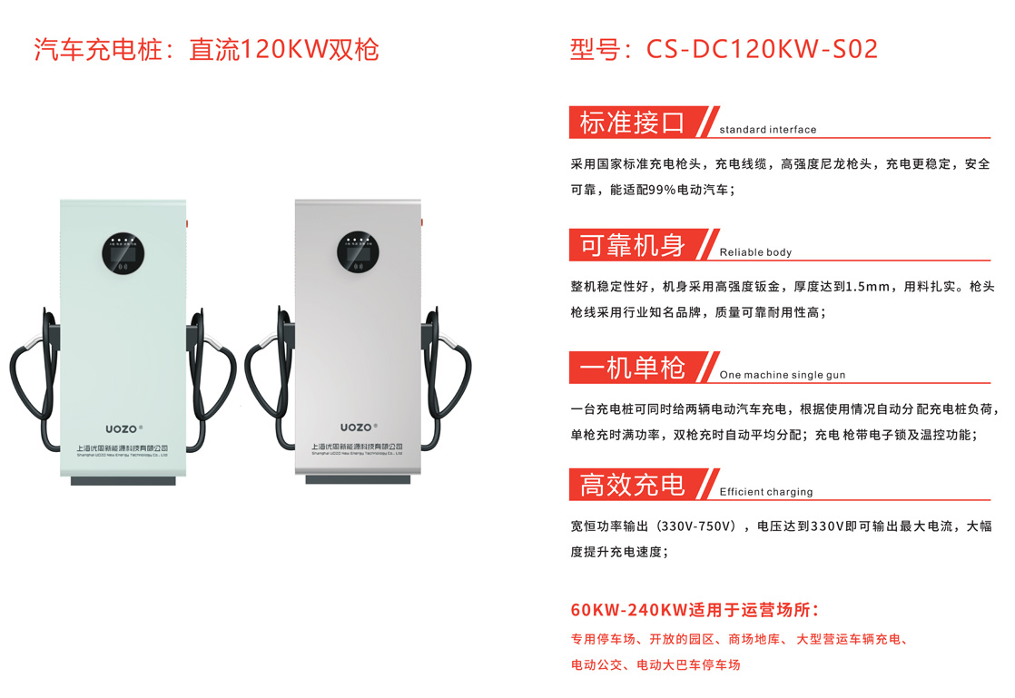 单枪充时满功率,双枪充时自动平均分配;充电枪带电子锁及温控功能;