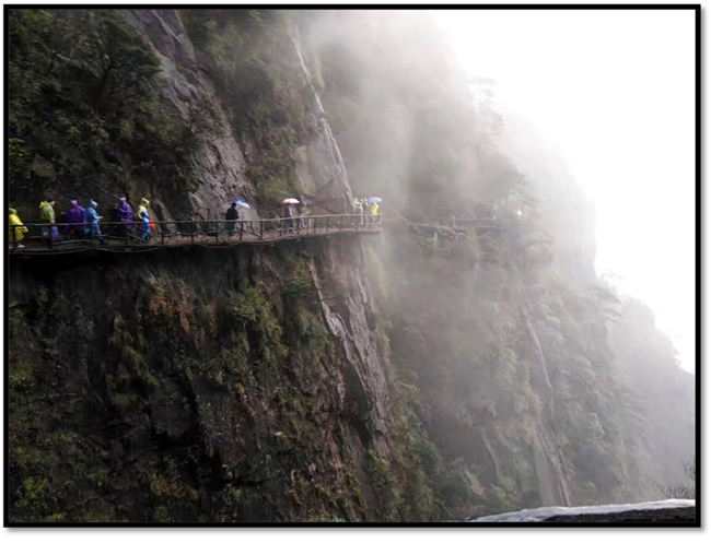一路的风景美不胜收,可惜天公不太作美,一时下起了倾盆山雨,这对登山途中的我们来说是个考验。