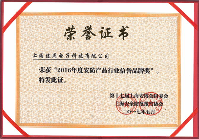 本次颁奖典礼由上海市公安局技术防范办公室开展的“2016年度上海安防产品行业优秀品牌”、“2016年度上海安防行业优秀工程商”评选及颁奖活动。在众多技防专家、优秀工程商及广大用户的线上线下投票之下,上海优周很荣幸获得了“2016年度上海安防产品行业信誉品牌奖”。